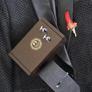 • Elegant Design: Features a stylish tie, matching pocket square, and sophisticated cufflinks.